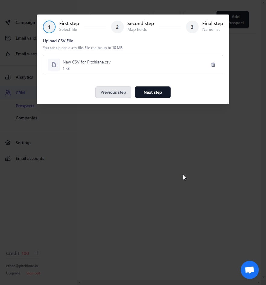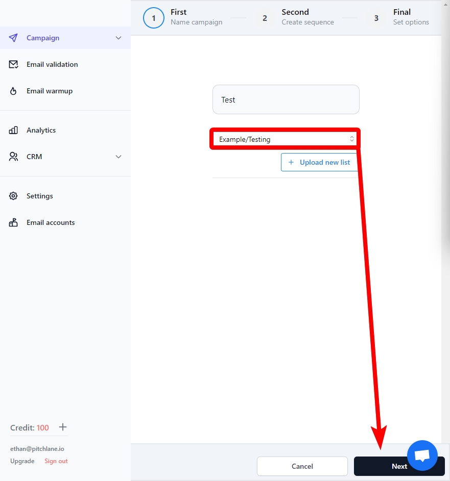 7.) Select your uploaded lead list and select next