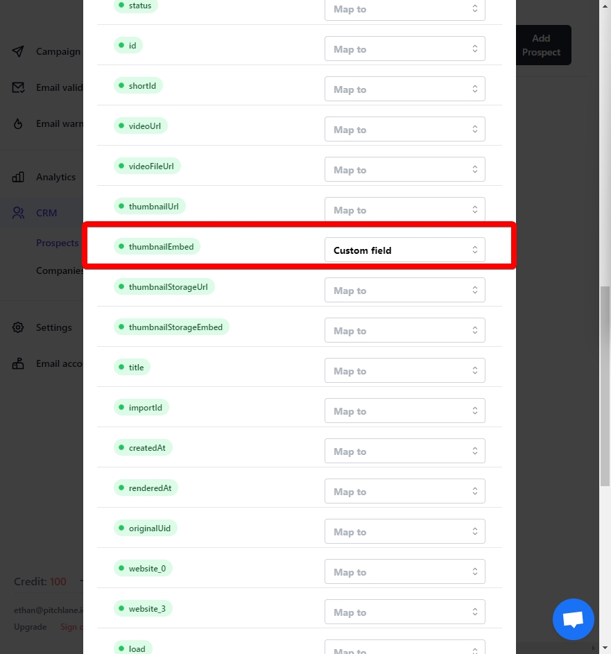 4.) Locate the field titled, "thumbnailEmbed" and select "Custom field"
