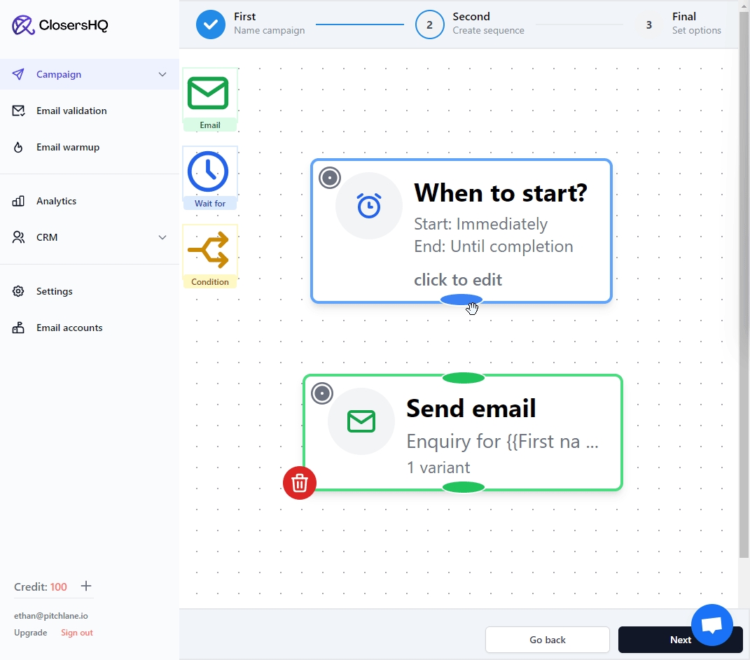 11.) Connect the elements of your campaign and Select, "Next"