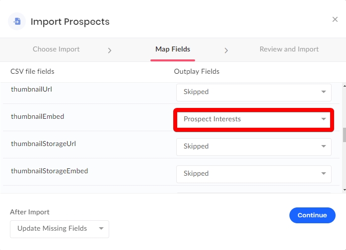 5.) Map the field of "thumbnailEmbed" to "Prospect Interests"