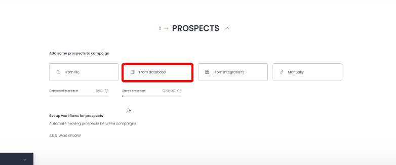 8.) Scroll down to "Prospects" and select from database.