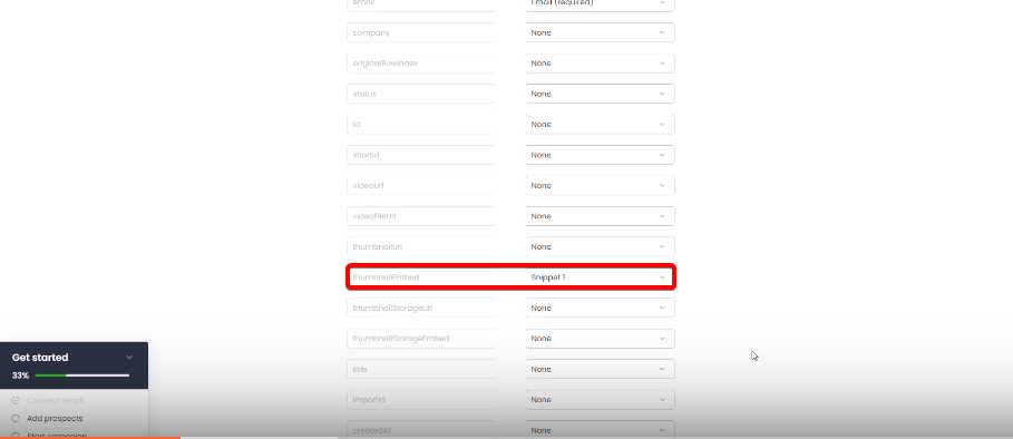 5.) Find "ThumbnailEmbed" and assign that as "Snippet 1"